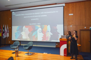 Seguiu-se a apresentação do Relatório da CIGND por Filomena Teixeira, coordenadora da CGNID do IPC, com dados remetidos pelas Unidades Orgânicas de Ensino e Serviços do IPC, a respeito das ações previstas no Plano de Igualdade de Género e Não Discriminação (PIGND) para o ano de 2023.