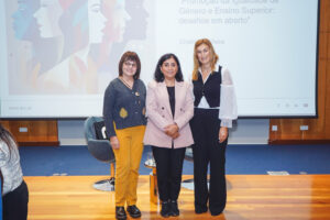 Posteriormente teve lugar uma sessão plenária com a oradora Cristina Vieira, docente da Faculdade de Psicologia e Ciências da Educação da Universidade de Coimbra, sob o tema “Promoção da Igualdade de Género e Ensino Superior: desafios em aberto”, moderada por Ana Ferreira.