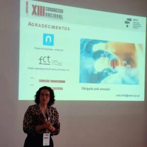 A investigadora Carla Patrícia Silva, docente da ESTeSC-IPC/H&TRC e membro da equipa do projeto SOLCAT, foi galardoada com o Prémio de Melhor Comunicação Oral no Congresso da Associação Portuguesa de Licenciados em Farmácia (APLF), que decorreu nos dias 18 e 19 de outubro de 2025, em Aveiro. A sua comunicação intitulada “Ciprofloxacin Stability and Degradation Studies: Influence of pH, Temperature and Light Exposure” destacou-se pela qualidade científica e pela relevância dos resultados apresentados no estudo da estabilidade e degradação de antibióticos.