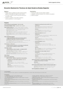Esta iniciativa é dirigida a técnicos de ação social do ensino superior, dirigentes, pessoal docente e não docente, estudantes e público em geral. Pretende-se refletir sobre as políticas de ação social no ensino superior associadas aos apoios sociais diretos, bem como promover o debate e partilha de boas práticas na inovação social e fomentar a análise crítica sobre contextos socioeconómicos no ensino superior.