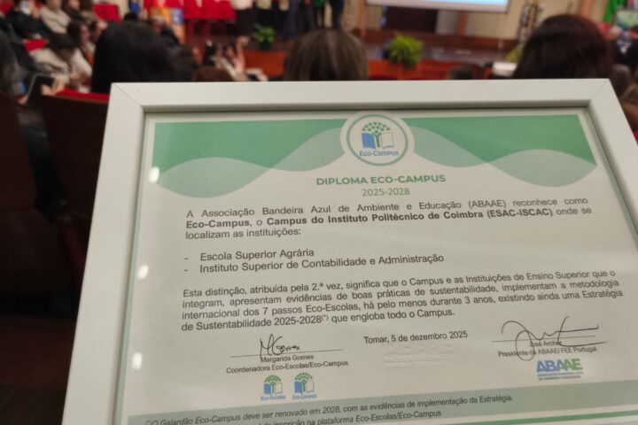 A totalidade das Unidades Orgânicas de Ensino (UOE) do Politécnico de Coimbra (IPC) foi novamente galardoada com a Bandeira Verde Eco-Escolas, tendo recebido essa distinção esta sexta-feira, dia 5 de dezembro, numa Cerimónia organizada pela Associação Bandeira Azul de Ambiente e Educação (ABAAE) no Instituto Politécnico de Tomar, renovando-se assim o estatuto de Eco-Politécnico do IPC.