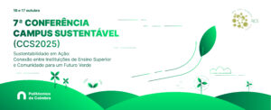 Estão abertas as inscrições e submissões de resumos para a 7.ª 𝗖𝗼𝗻𝗳𝗲𝗿ê𝗻𝗰𝗶𝗮 𝗖𝗮𝗺𝗽𝘂𝘀 𝗦𝘂𝘀𝘁𝗲𝗻𝘁á𝘃𝗲𝗹 (CCS2025) “Sustentabilidade em Ação: Conexão entre Instituições de Ensino Superior e Comunidade para um Futuro Verde” que terá lugar nos dias 16 e 17 de outubro de 2025.