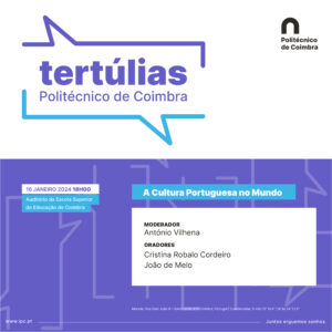 O Politécnico de Coimbra (IPC) promove uma tertúlia sobre “A Cultura Portuguesa no Mundo”, no próximo dia 16 de janeiro, pelas 18h00, no Auditório da Escola Superior de Educação do Politécnico de Coimbra. A iniciativa tem como oradores João de Melo e Cristina Robalo Cordeiro, que vão partilhar com o público a sua experiência, numa conversa moderada por António Vilhena.